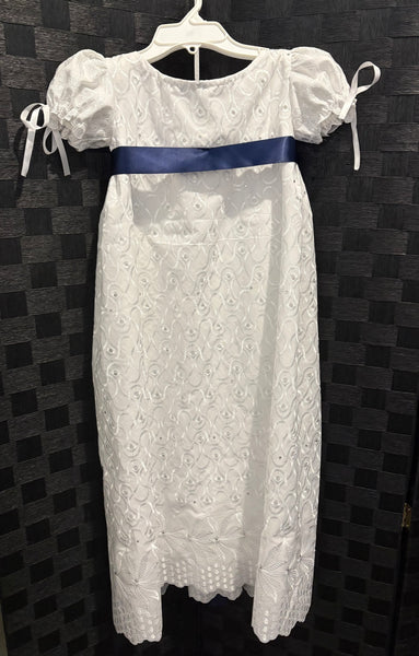 This gown easily slips over the head and then cinches in with both a neckline and waistline satin ribbon drawstrings creating the perfect slightly gathered look as well as allowing for size adjustment. This sweet gown would be just the dress for a Austen tea party, picnic in the park, a historical birthday party, re-enactment wedding or even a ball!